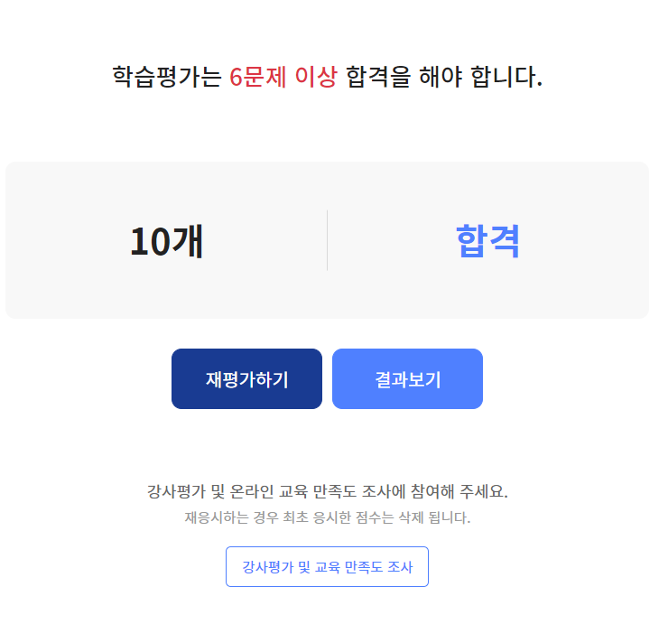 필수교육만 모두 들으면 수강완료처리가 됩니다.