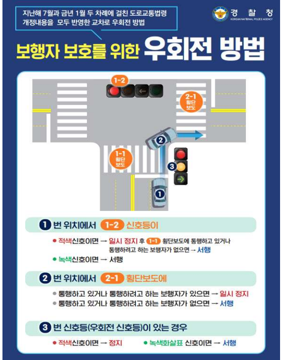 범칙금을 떠나 운전자, 보행자 우리 모두의 안전을 위해 우회전 일시정지 규정이 잘 지켜졌으면 좋겠습니다.
