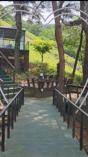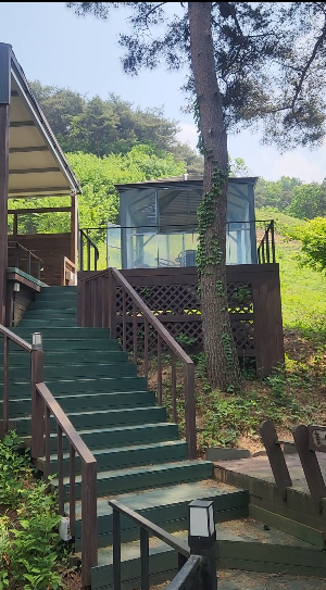 나무데크 위에 독립적인 공간에 테이블이 마련 돼 있고