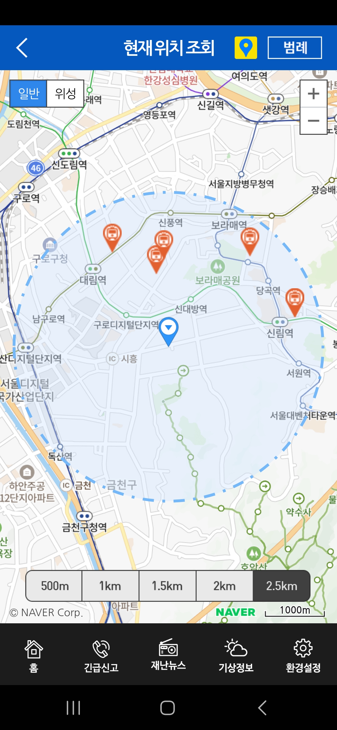 다운로드하시고 위치정보와 알림을 허용해 놔야 급할 때 유용하게 사용할 수 있어요.