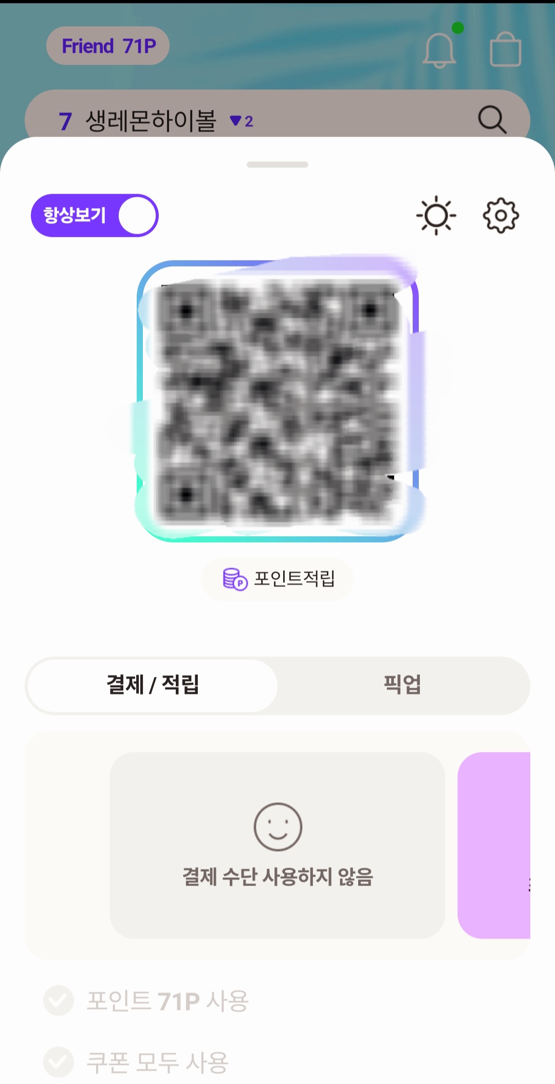 꼭 잊지말고 결제 전에 포켓 CU앱을 실행시켜 큐알코드로 멤버십 적립을 해야 합니다.