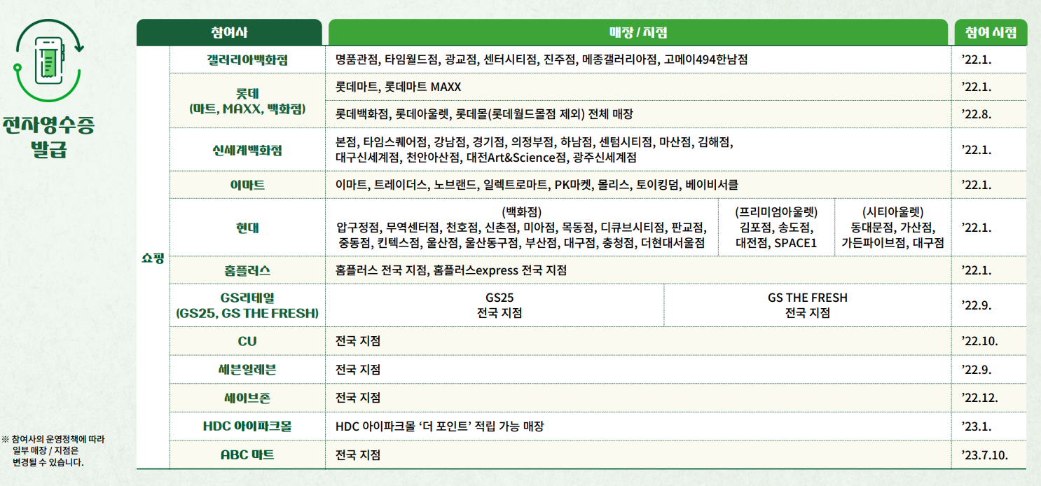 기본적으로 전자영수증은 제도 참여기업의 앱을 따로 설치해서