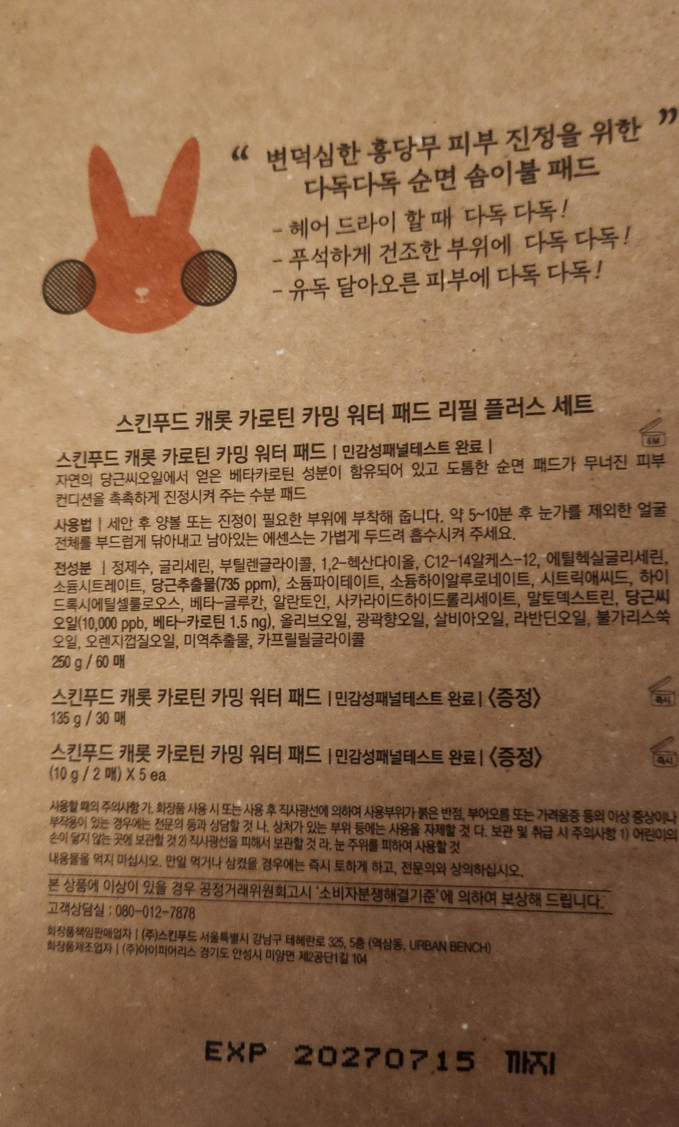스킨푸드 당근패드 정말 당근이 들었을까 살펴보았는데요.