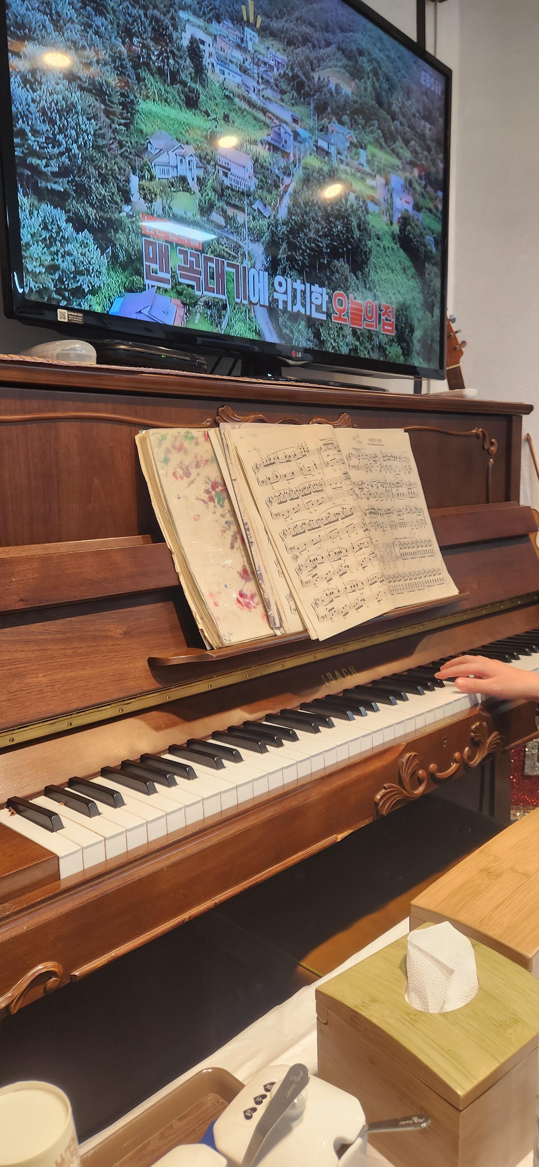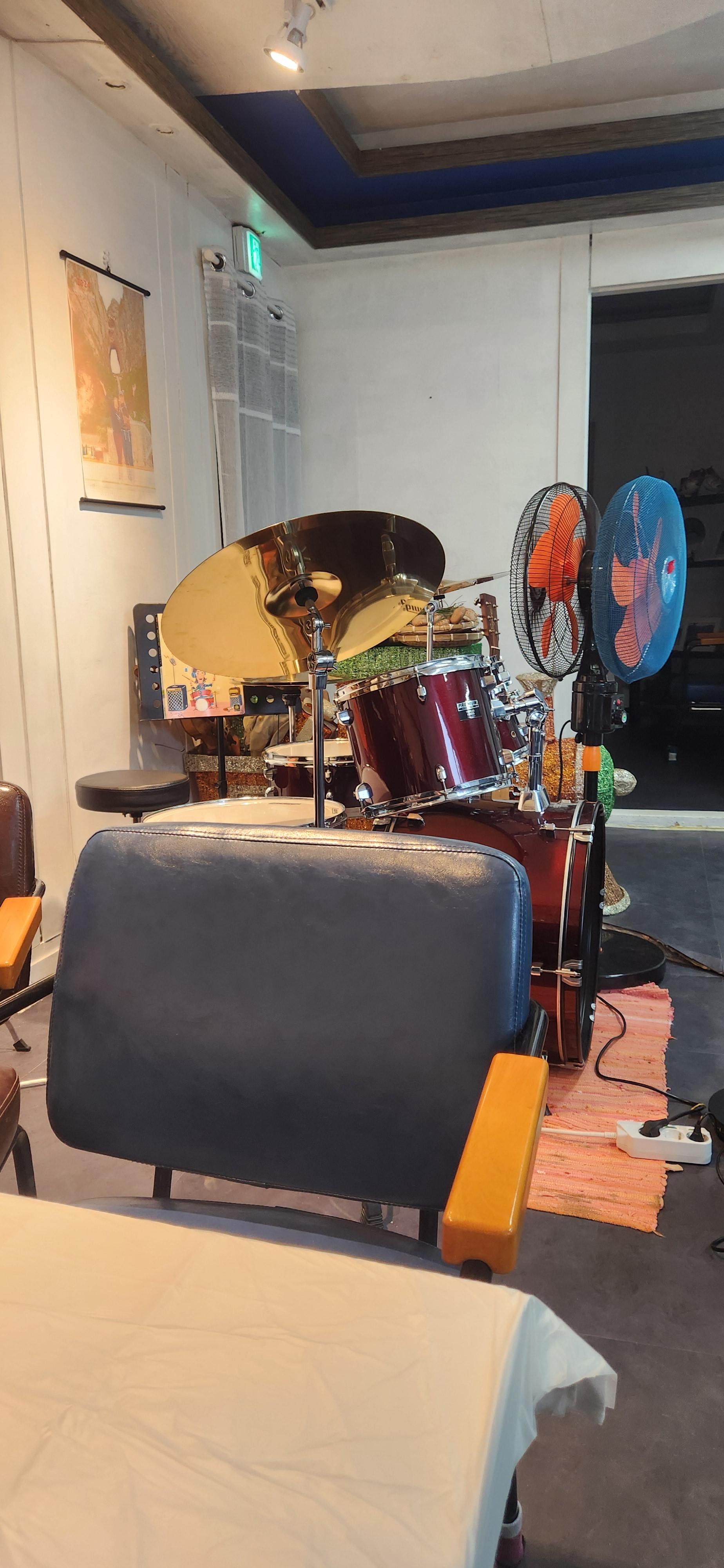 특이하게 식당 안에 드럼과 피아노가 비치되어 있었는데