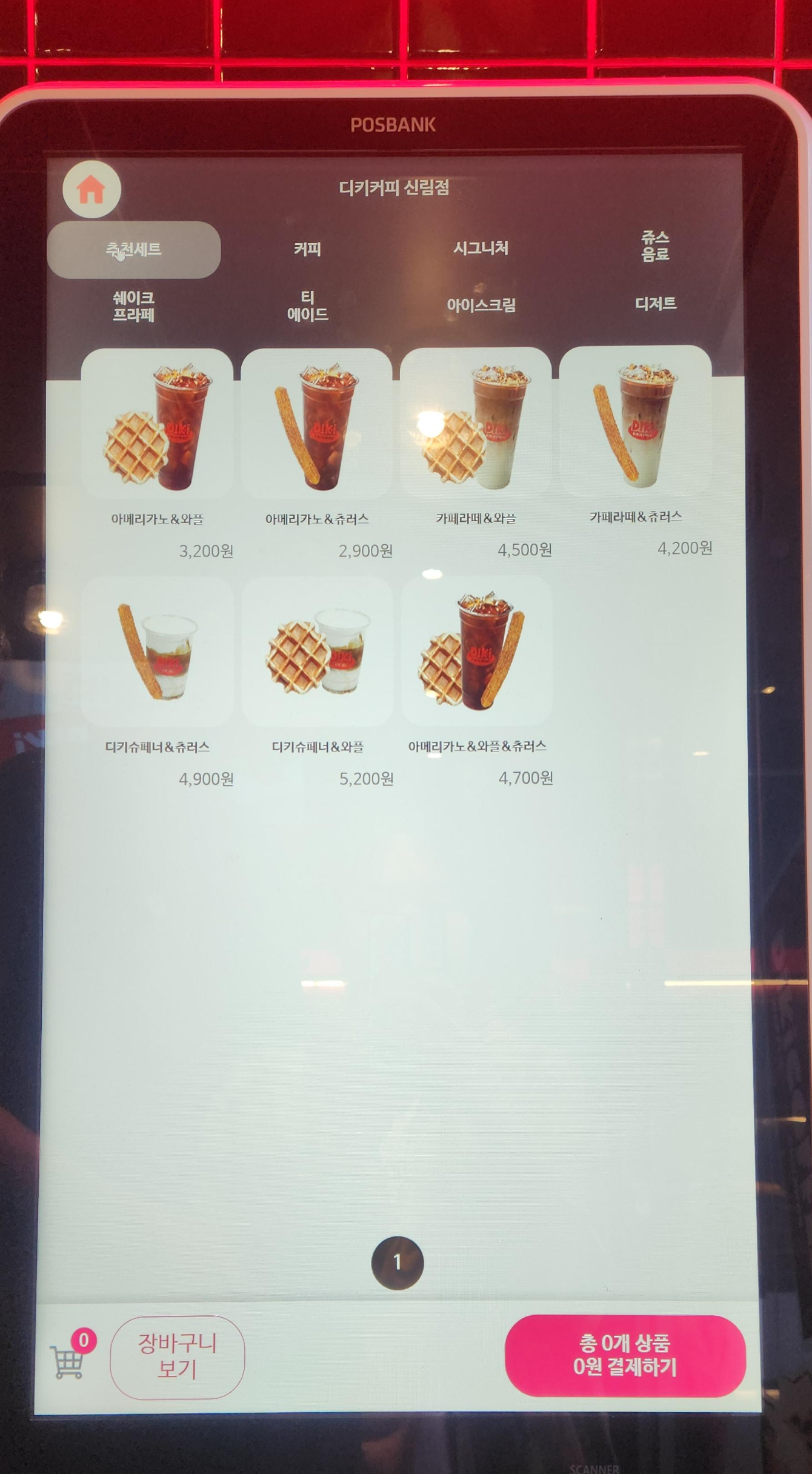 주문은 카페 내부와 외부에 한 대씩 설치되어 있는 키오스크에서 하면 되는데