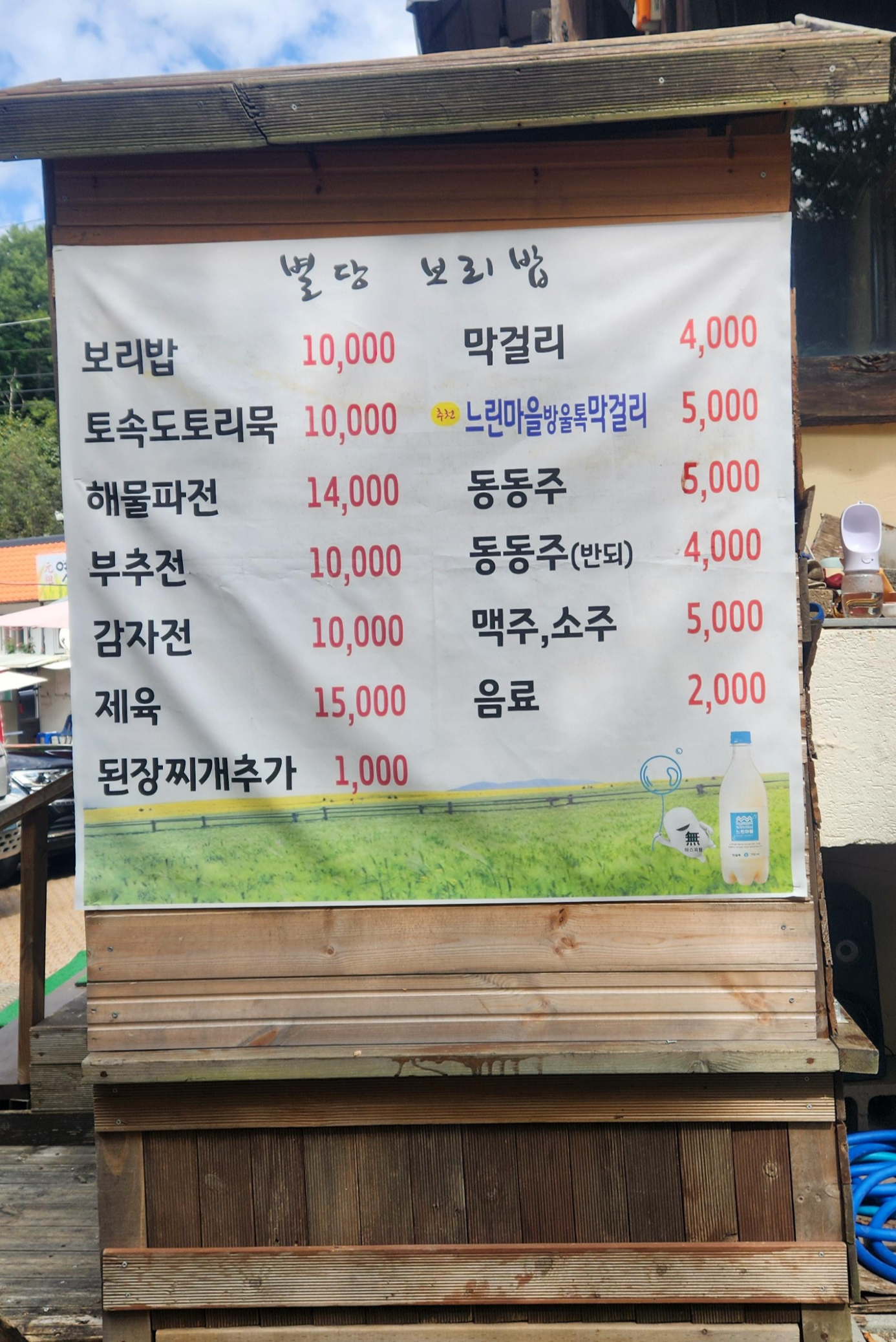 저희는 보리밥과 토속도토리묵, 해물파전 그리고 동동주를 주문했어요.