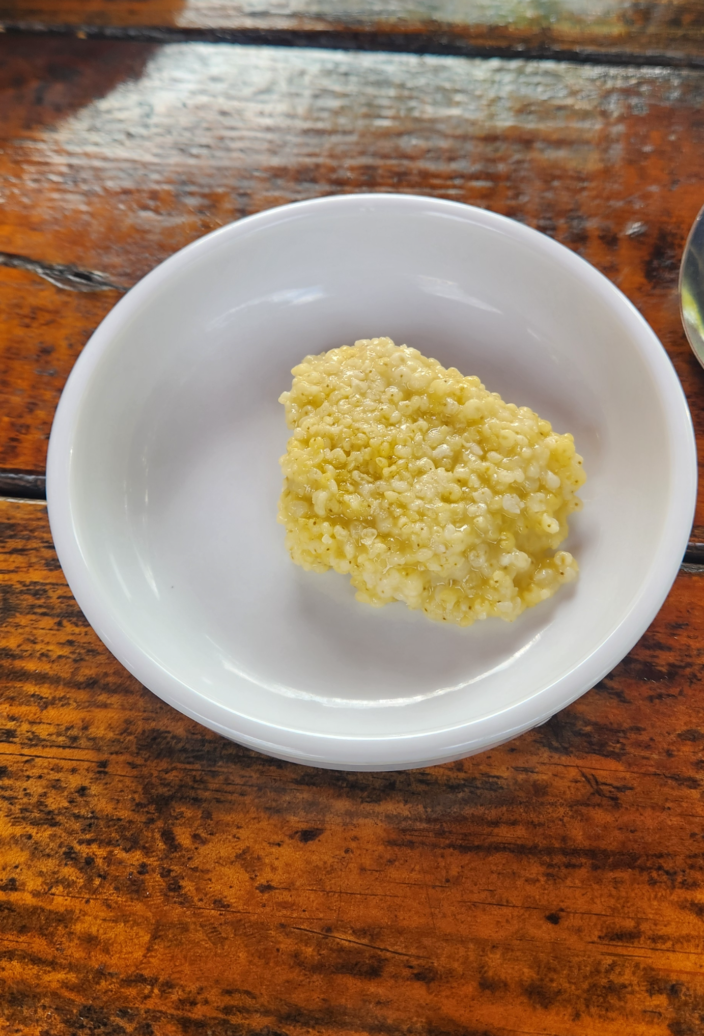 밑반찬들과 함께 이렇게 조밥이 인당 한 개씩 제공되는데