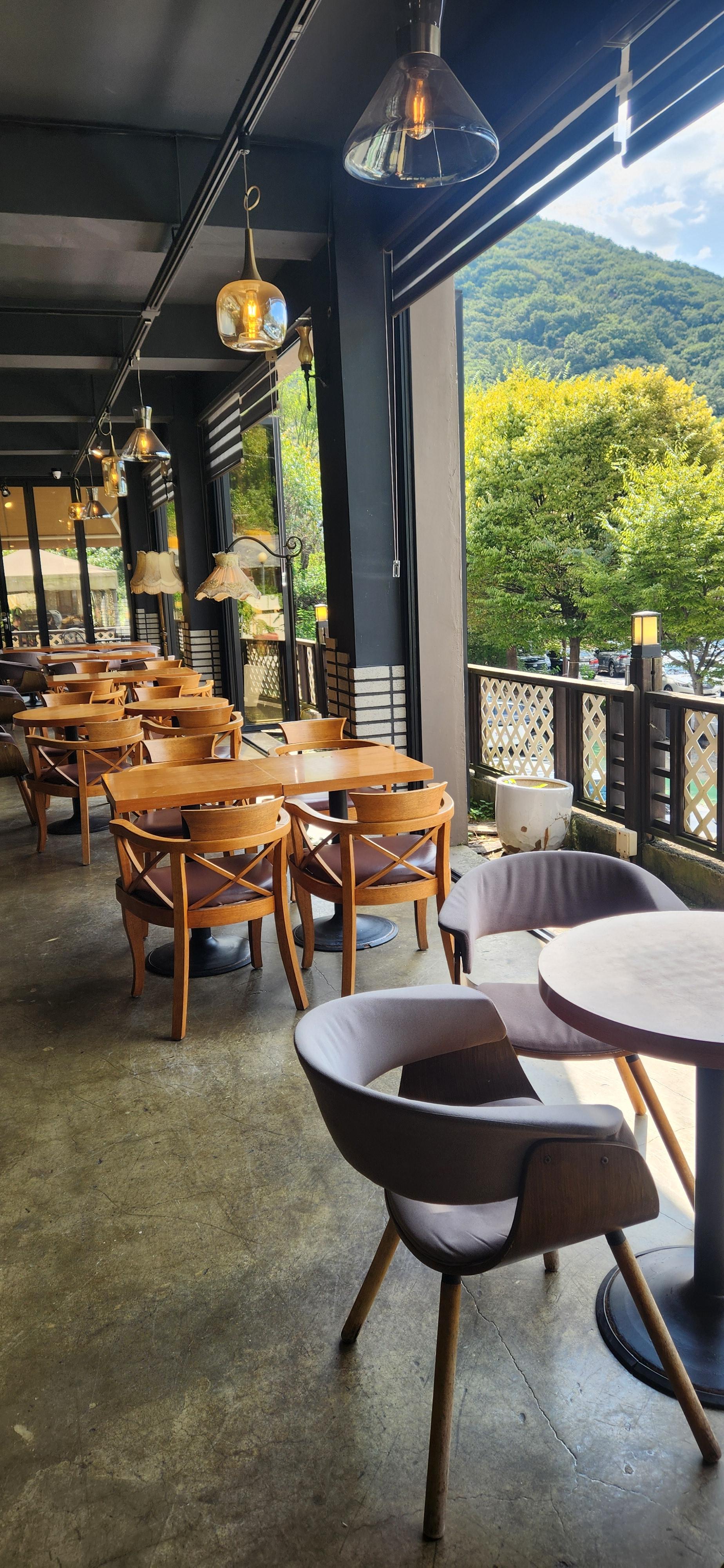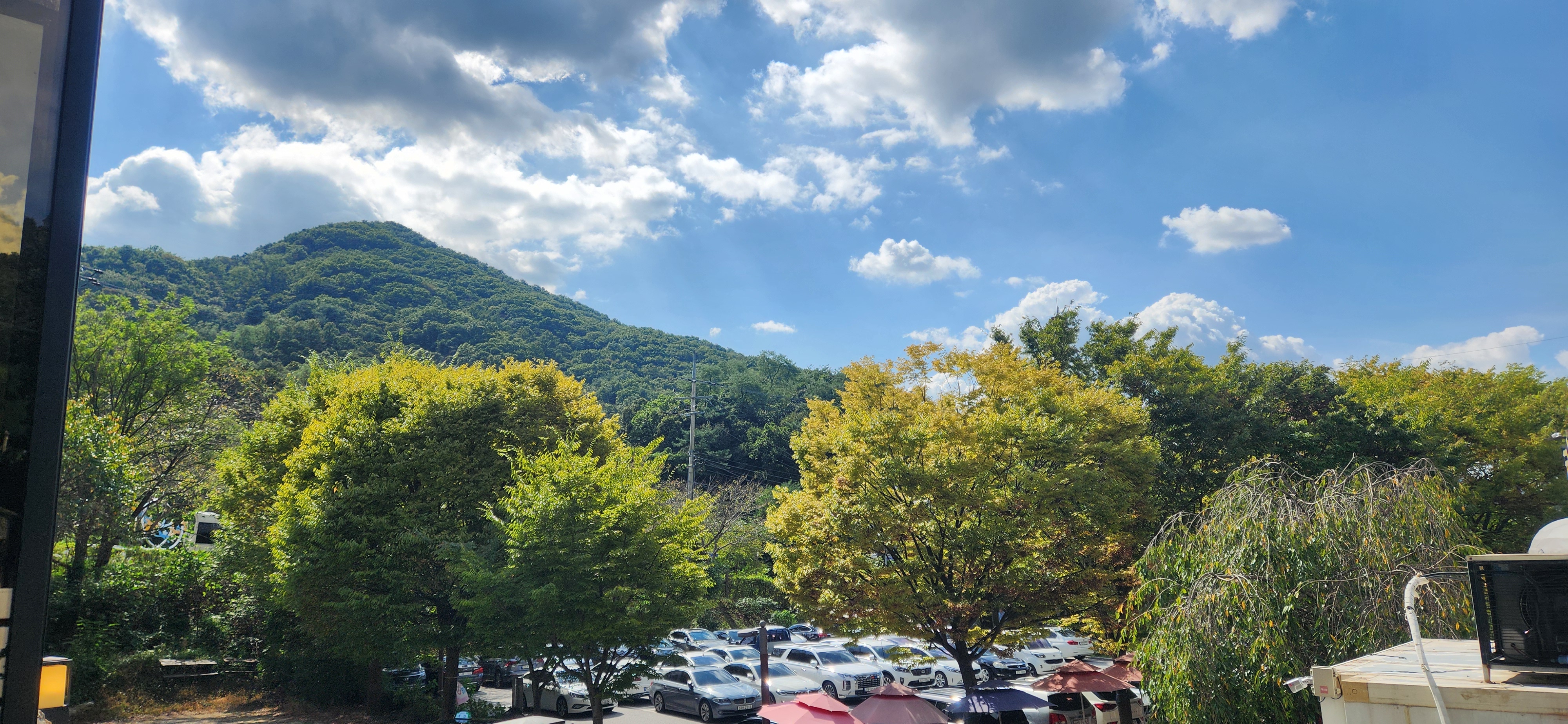 활짝 열어둔 통창 밖으로 산 뷰가 시원하게 펼쳐져 있어 멀리 여행 온 것 같은 기분이었습니다.