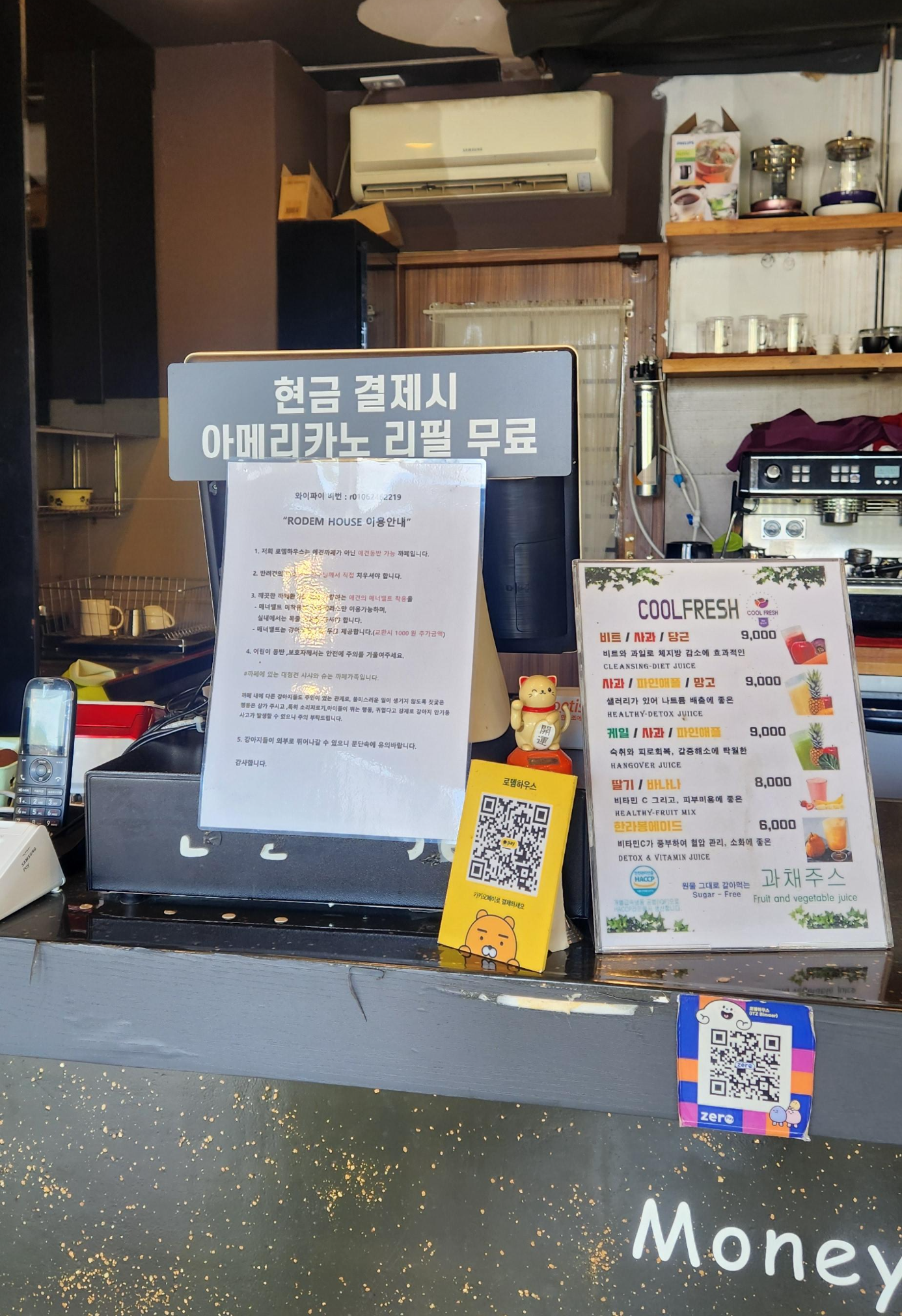 커피 맛은 대체적으로 쏘쏘 했고 현금 결제 시 아메리카노 리필이 무료라고 합니다.