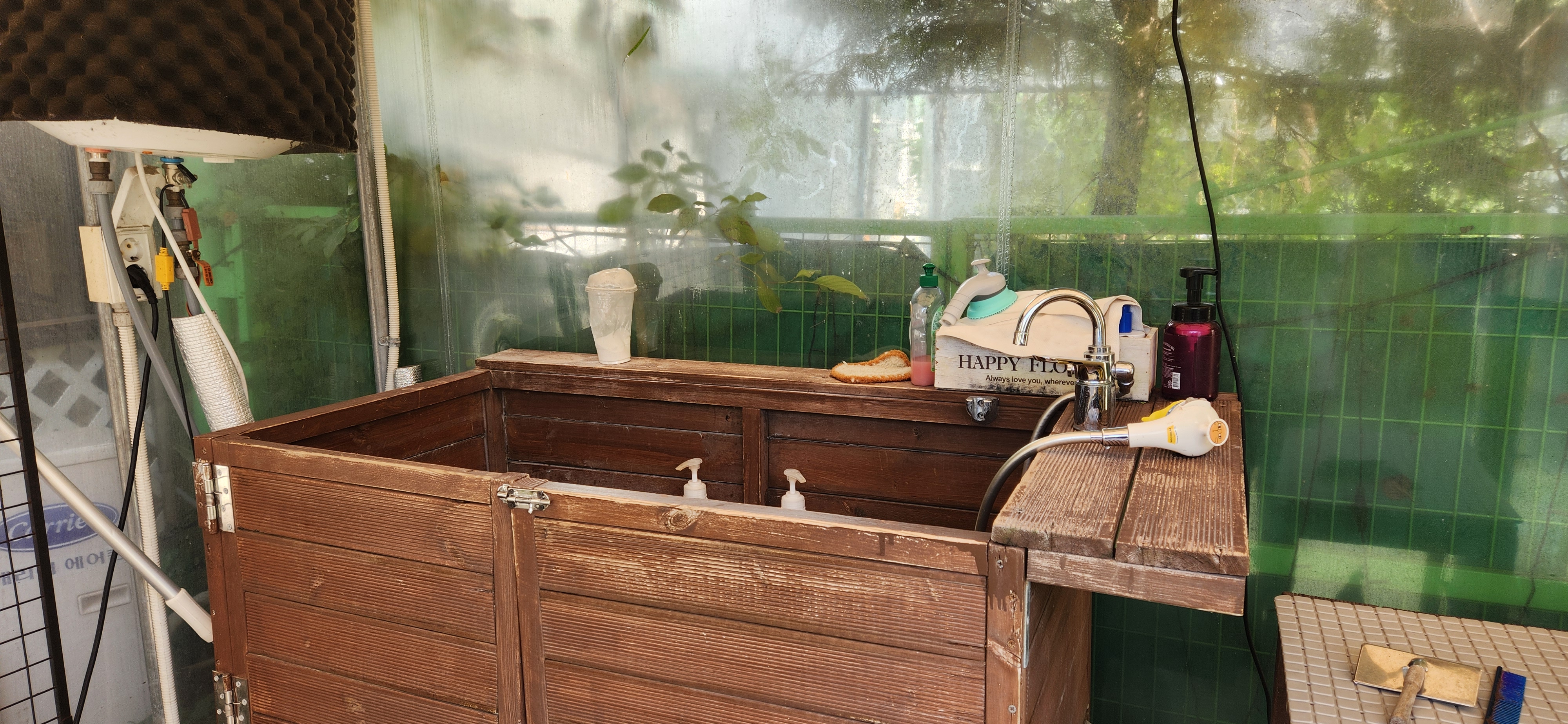 수영하고 나서 목욕이 필요한 강아지들을 위한 셀프 목욕 공간이에요.