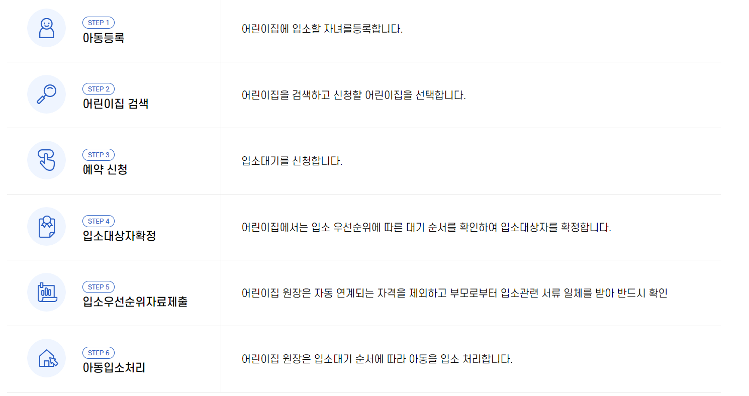 기존 어린이집 대기신청과 유치원 입학신청이