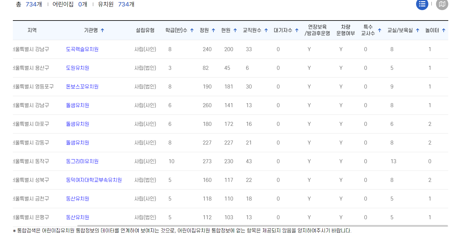 각 기관의 시설, 교직원 현황 및 교육비용 등을 비교해 보고 선택할 수 있습니다.