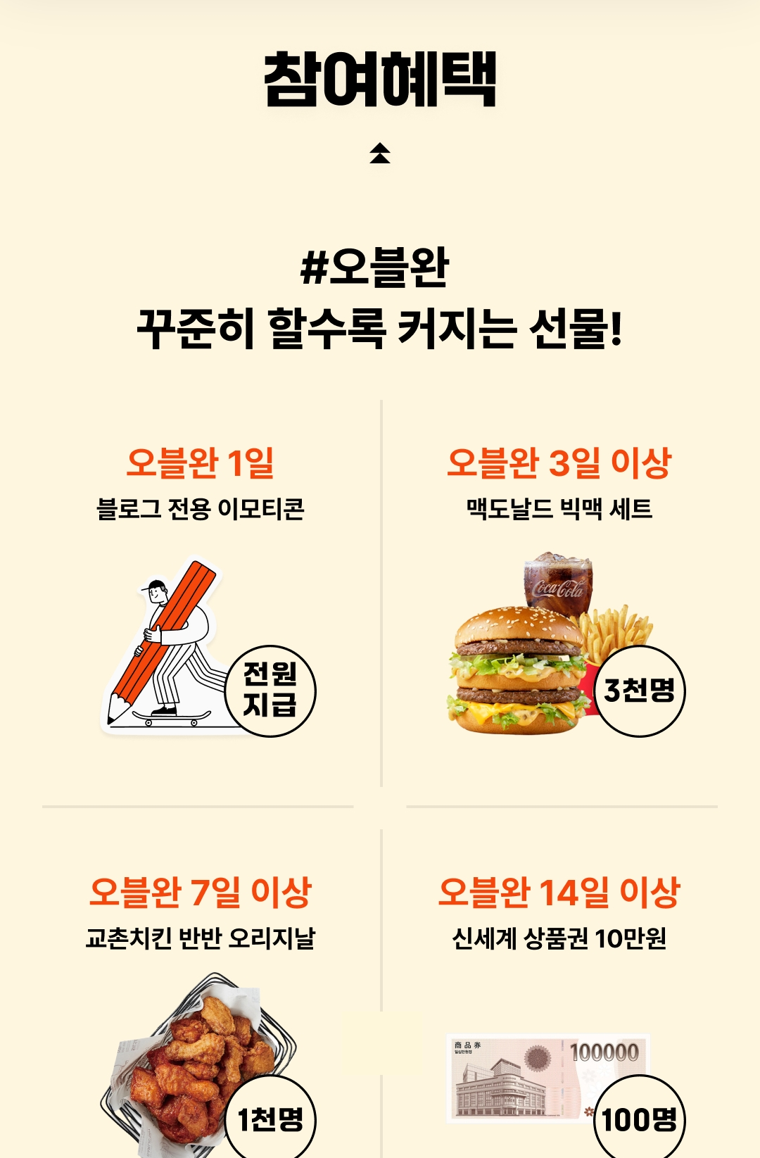 오블완 14일 이상 신세계 상품권 10만 원(100명)