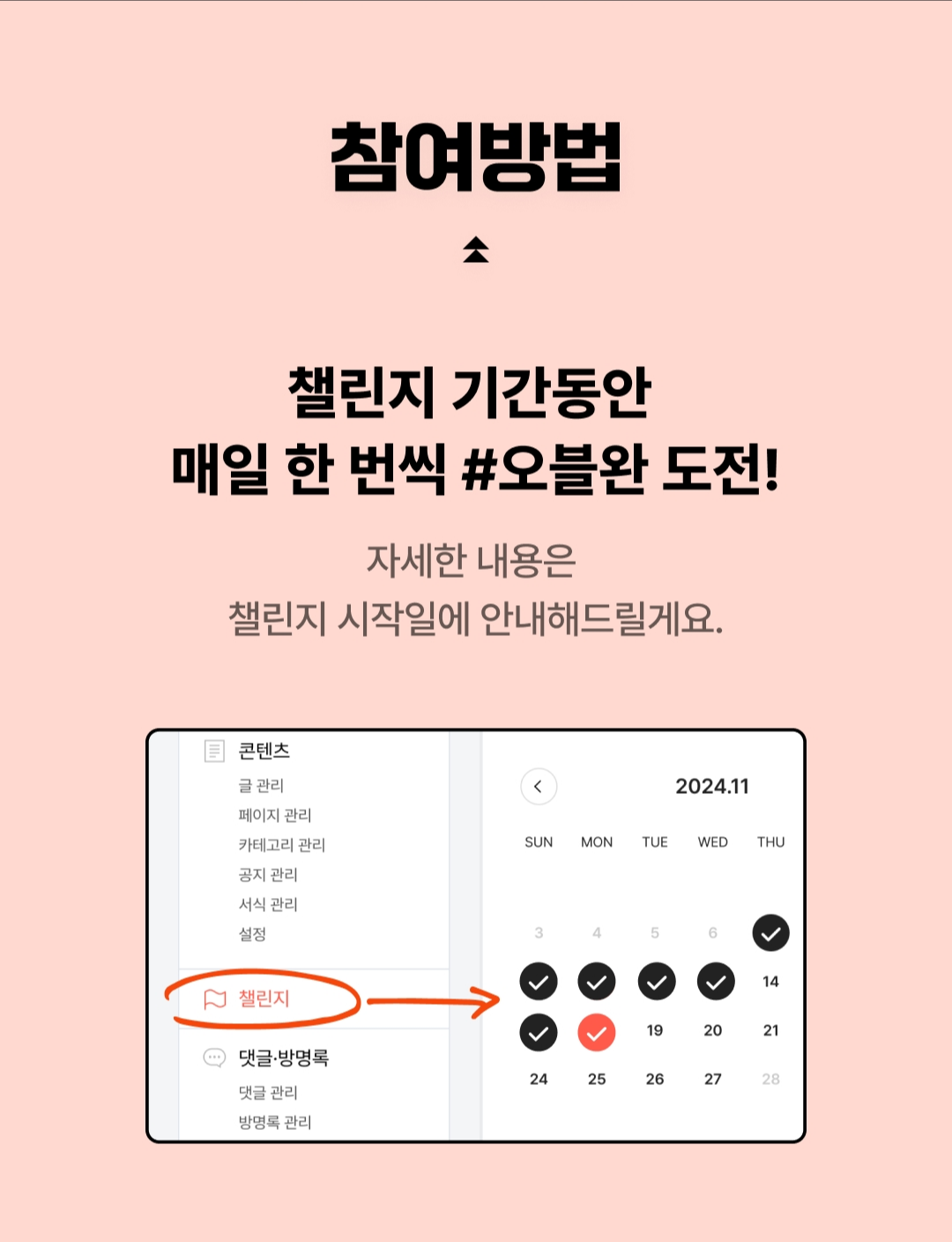 오늘은 티스토리에서 진행하는 블로그 챌린지 오블완챌린지 일정을 공유하려고 합니다.