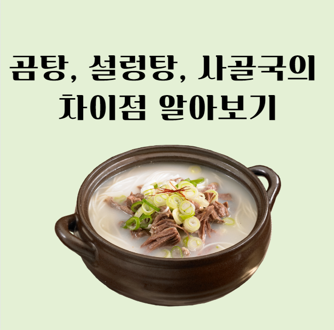 | 주재료 | 소고기(양지,사태,도가니,내장) | 소뼈+소고기 | 소 다리뼈(사골) |