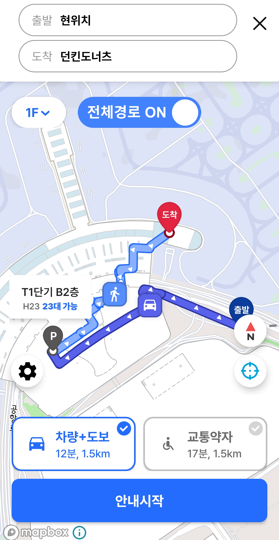 인천공항 주차관제 시스템과 연계된 실내 내비게이션 서비스