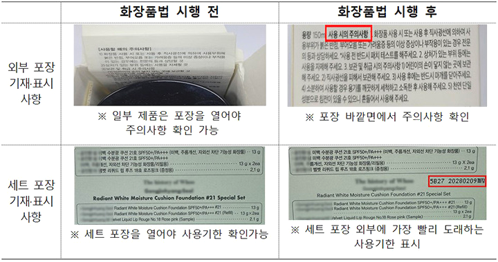 식품의약품안전처는 이번 개정에 따라 새로운 표시 기준이 적용된 제품 사례를 소개하고, 소비자들이 올바르게 정보를 확인할 수 있도록 안내하고 있습니다. 그동안 일부 화장품의 경우 제품의 성분이나 사용법을 확인하려면 포장을 뜯어야 하는 불편함이 있었습니다. 하지만 이제 제품 외부에서 주요 정보를 쉽게 확인할 수 있어 더욱 안전한 소비가 가능해졌습니다.
