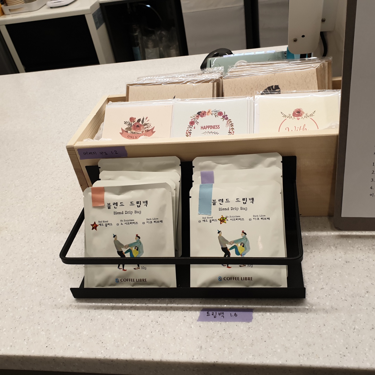 다양한 커피, 음료도 있고 드립백도 판매하고 있었습니다.