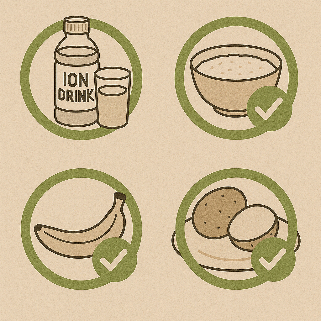 쌀미음, 쌀죽, 감자죽 등은 소화에 부담이 적고 수분 보충에도 효과적입니다. 처음엔 싱겁게 조리해 천천히 먹는 것이 좋습니다.