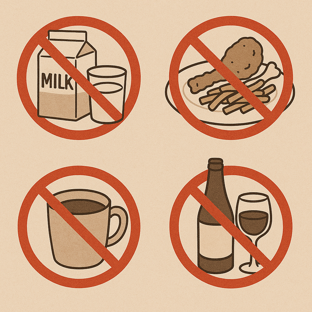4. 술, 커피, 탄산음료는 최소 1주일 이상 금지하는 것이 좋습니다.