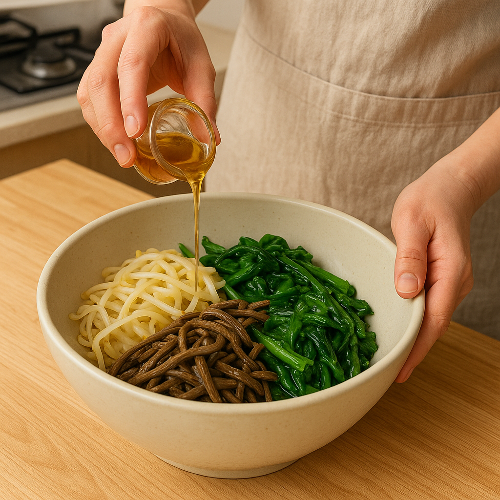 나물무침, 국수무침 등은 참기름·들기름을 1:1로 섞으면 풍미가 배가됩니다.