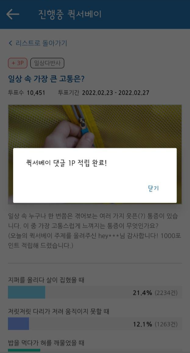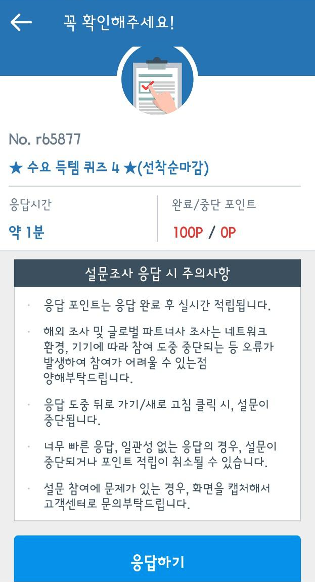 그래도 조사 참여만으로도 소액의 포인트를 얻을 수 있으니 저는 거의 무조건 참여합니다.