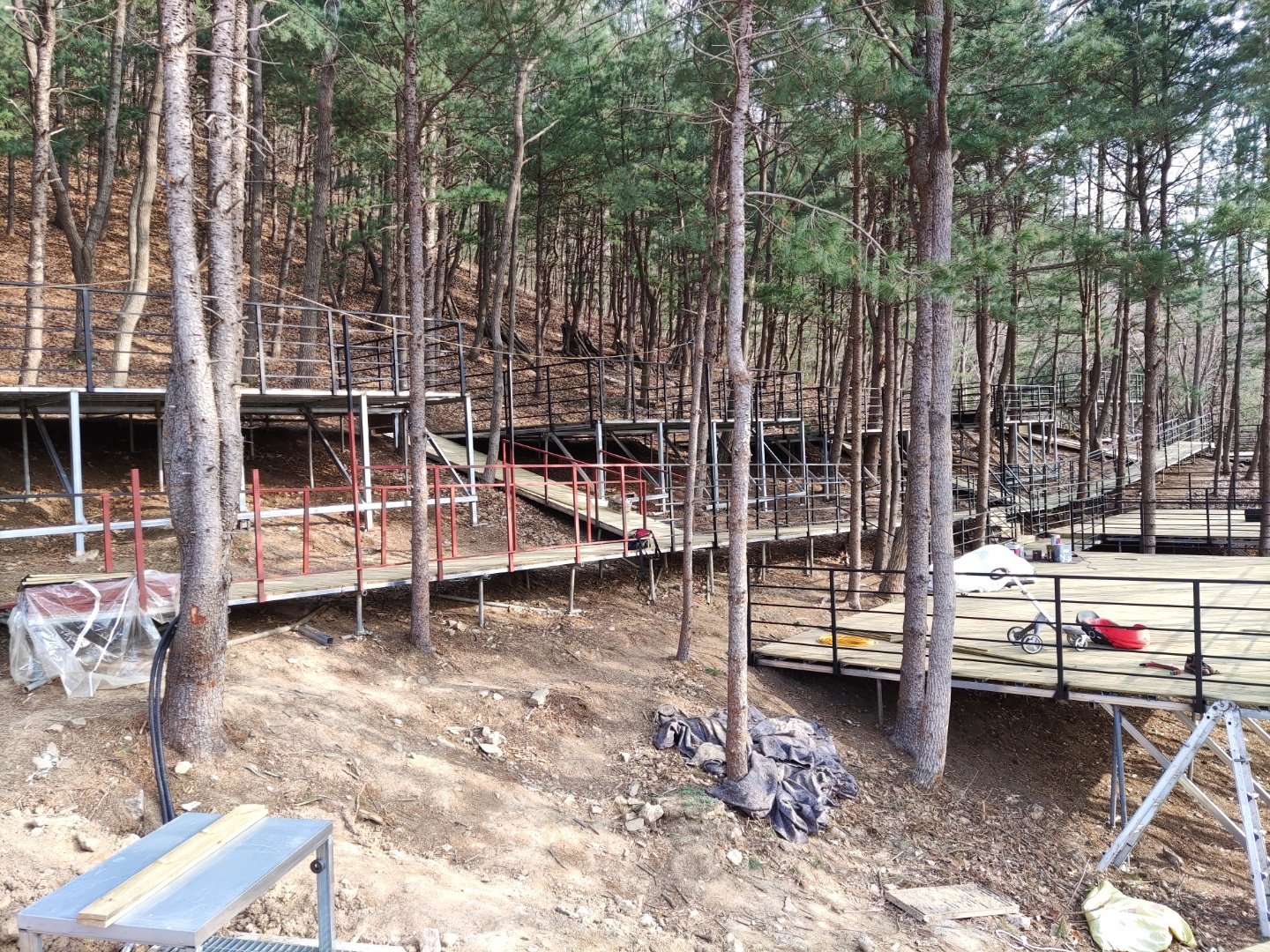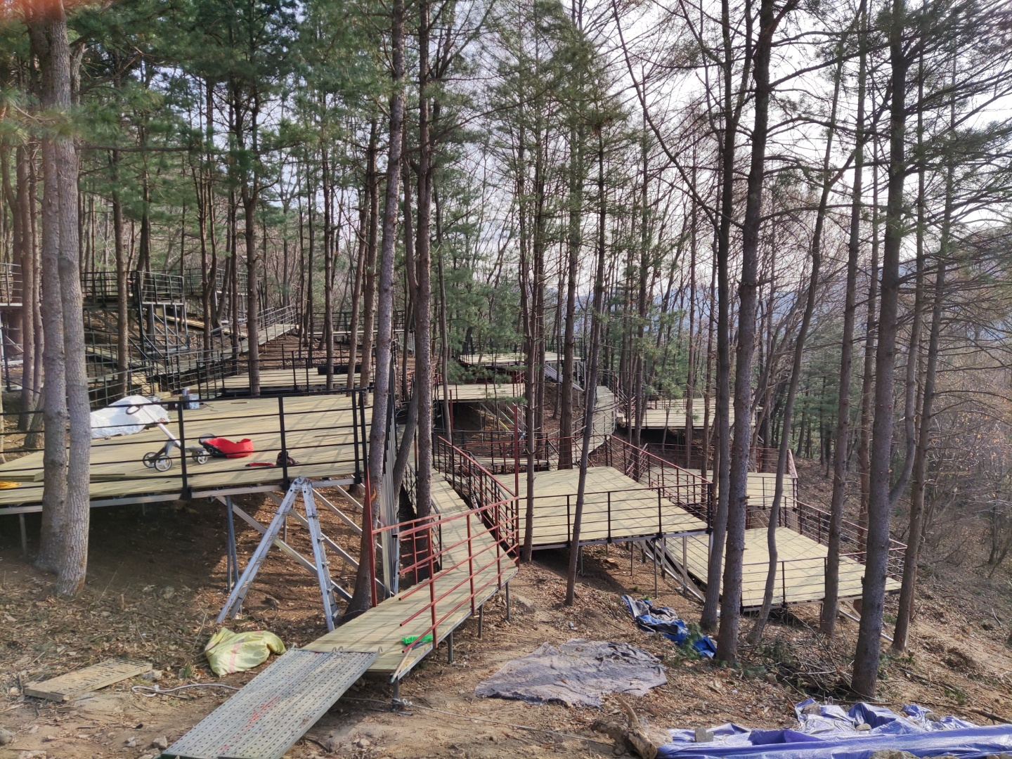 캠핑장 옆쪽과 입구 쪽에 데크공사를 하고 있다고 해요.
