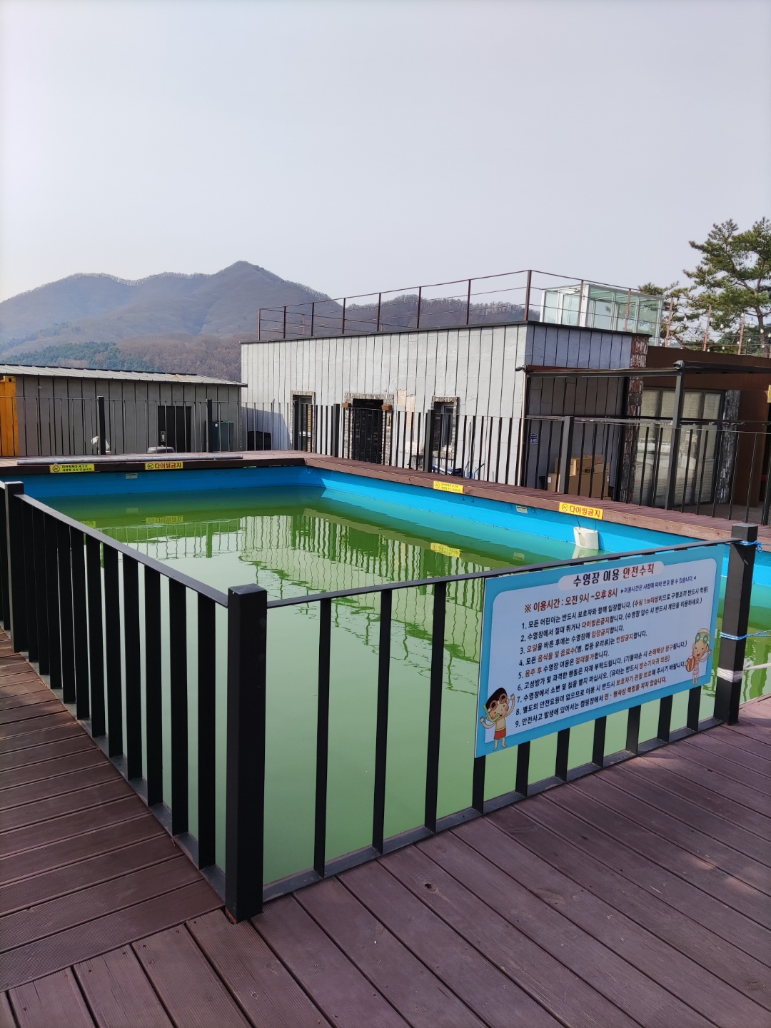 수영장은 아직 개장하지 않았지만 여름에 물놀이하면 참 좋을 것 같습니다.