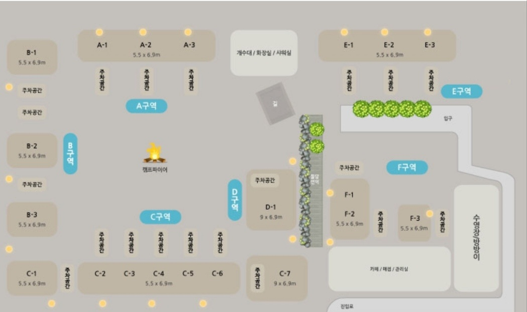 관리동 앞에 위치한 F구역은 캠핑장의 입구이긴 하지만