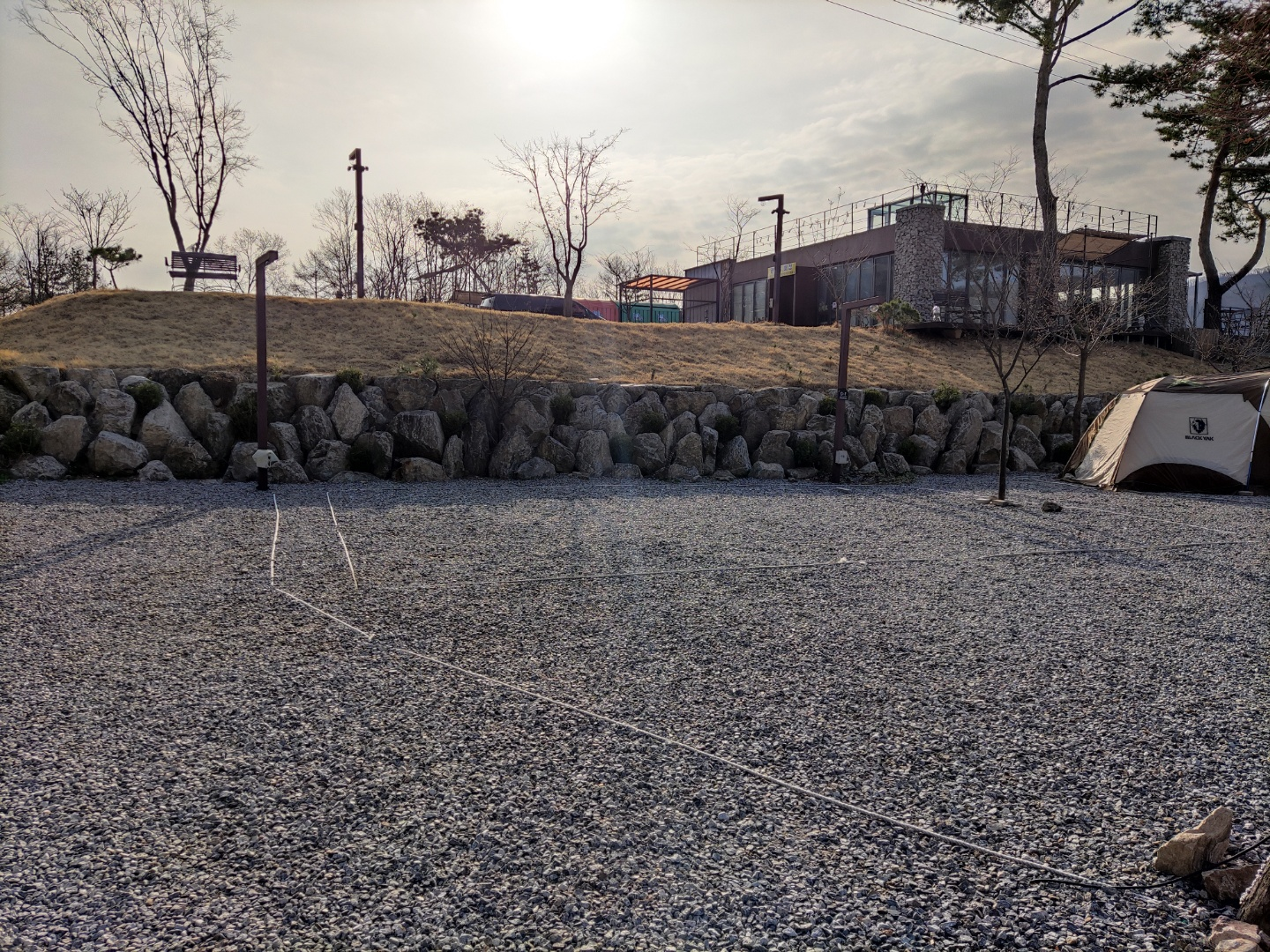 캠핑장 한쪽에서는 공사가 한창이었는데 기존의 캠핑장이 작아서