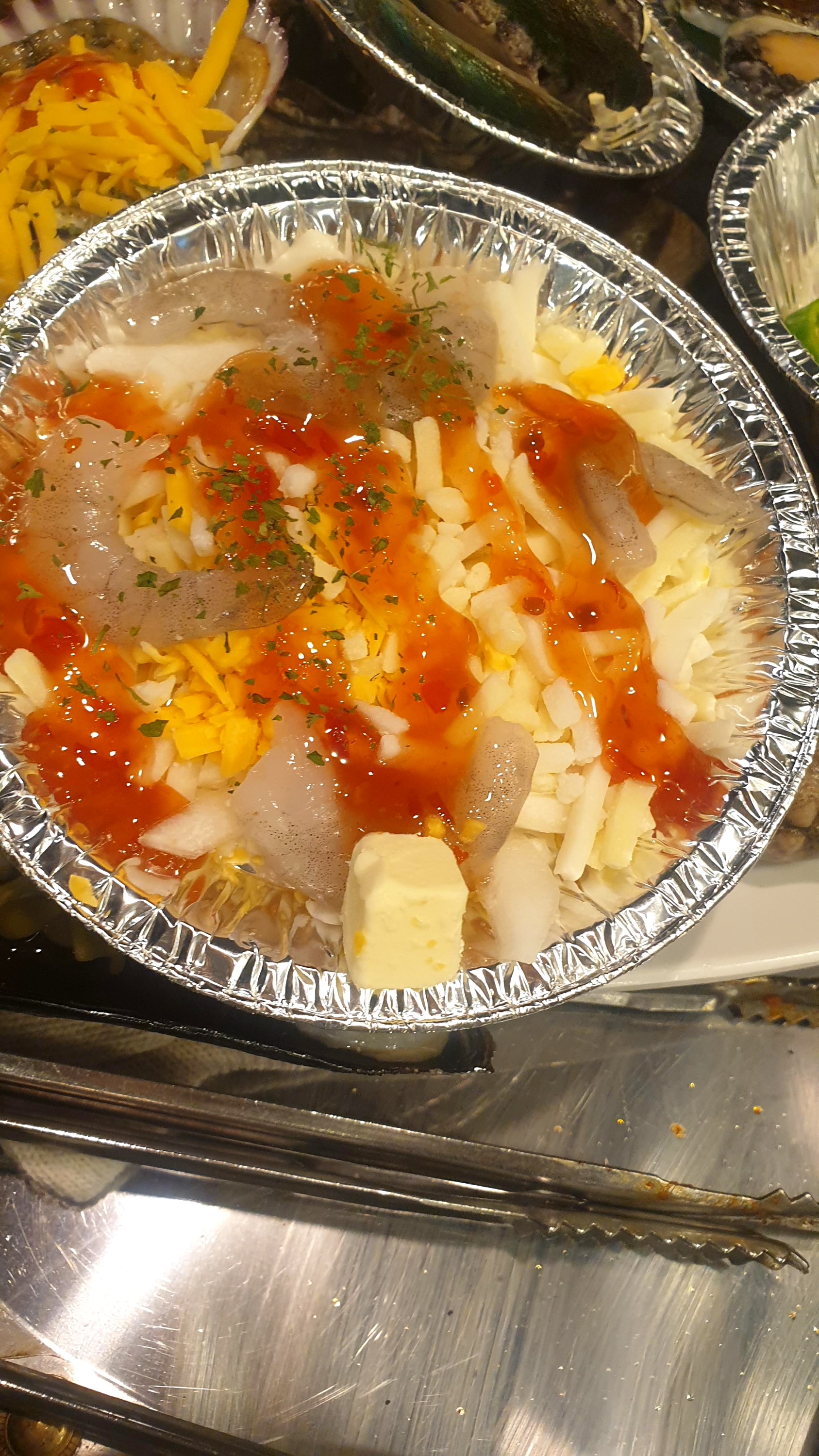 이 중에 리필이 가능한 것은 치즈 올라가는 것을 제외한 조개 종류와 석화예요.