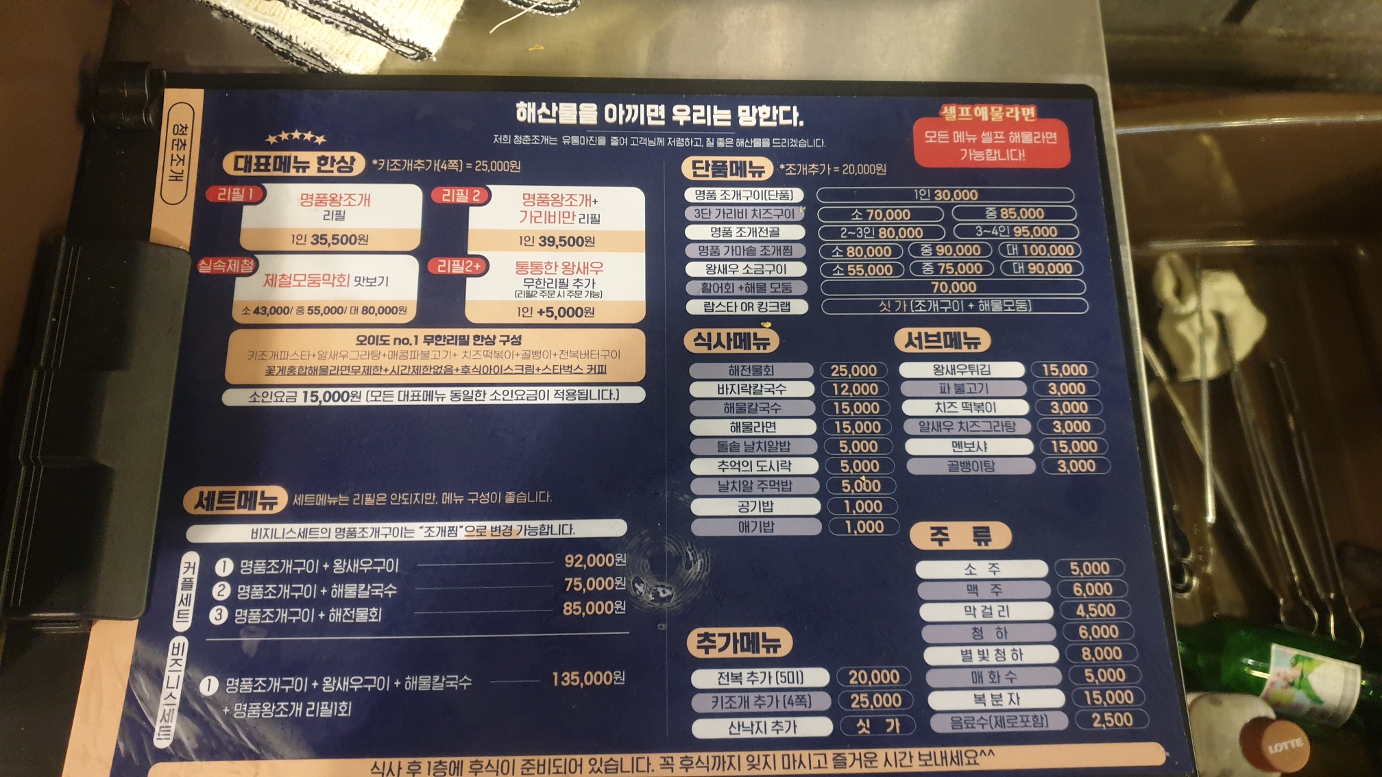 단품으로 주문을 할까 고민하다가 결국 리필 1 '명품왕 조개 리필' 메뉴로 주문했습니다.