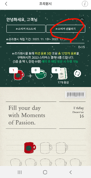 스타벅스 어플 첫 화면에서 2022 WINTER e-Frequency라고 쓰여 있는 곳을 누르면